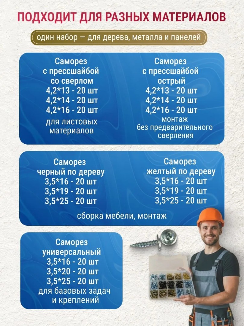 Наборы саморезов и дюбелей
